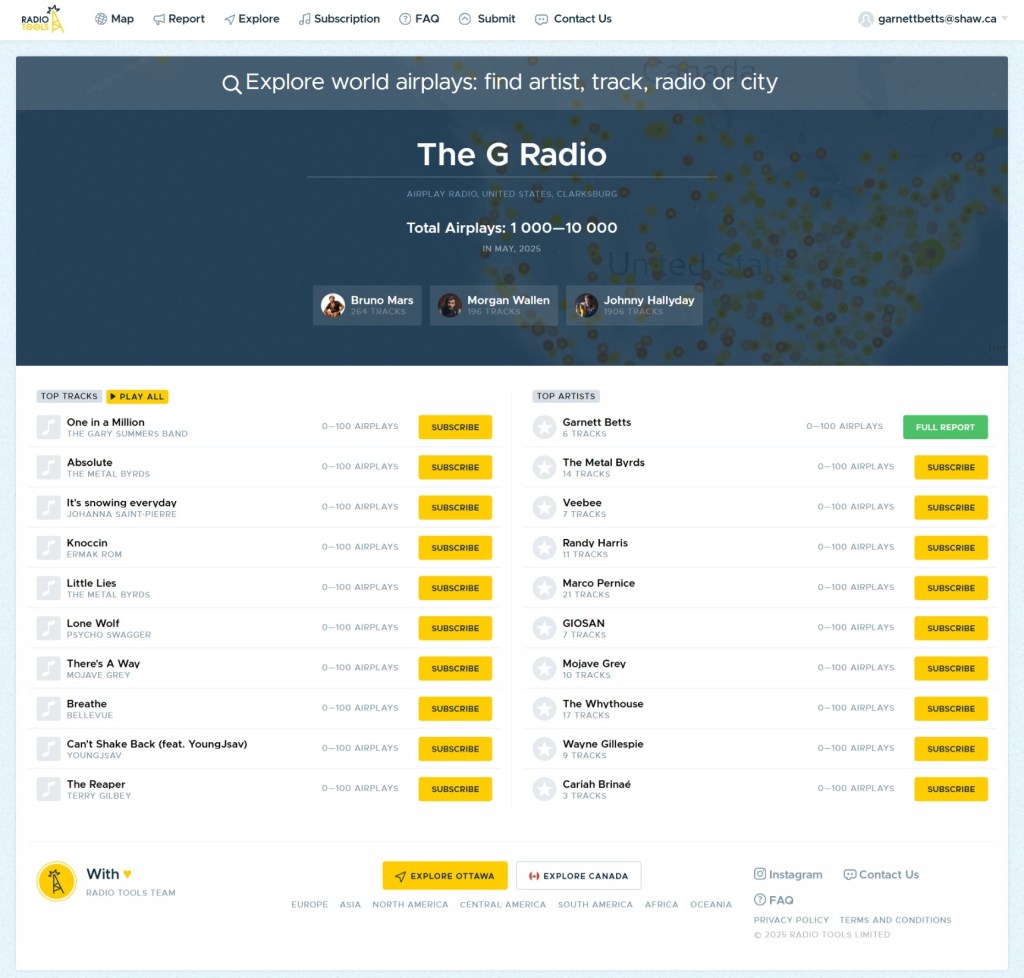 Thank you! to THE G RADIO for playing Fool Moon, Along The Shore, Someone Thought Of You, and Ten Years From Tonight in rotation!! 2024/2025 ………….Just click the logo!
